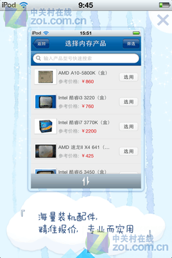 2、挑選硬件:在app的硬件庫中選擇您喜歡的CPU、顯卡、內(nèi)存、硬盤等。