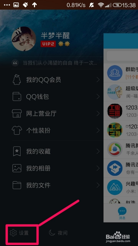 4、進(jìn)入QQ設(shè)置菜單:在設(shè)置頁(yè)面,你會(huì)看到各種選項(xiàng)。